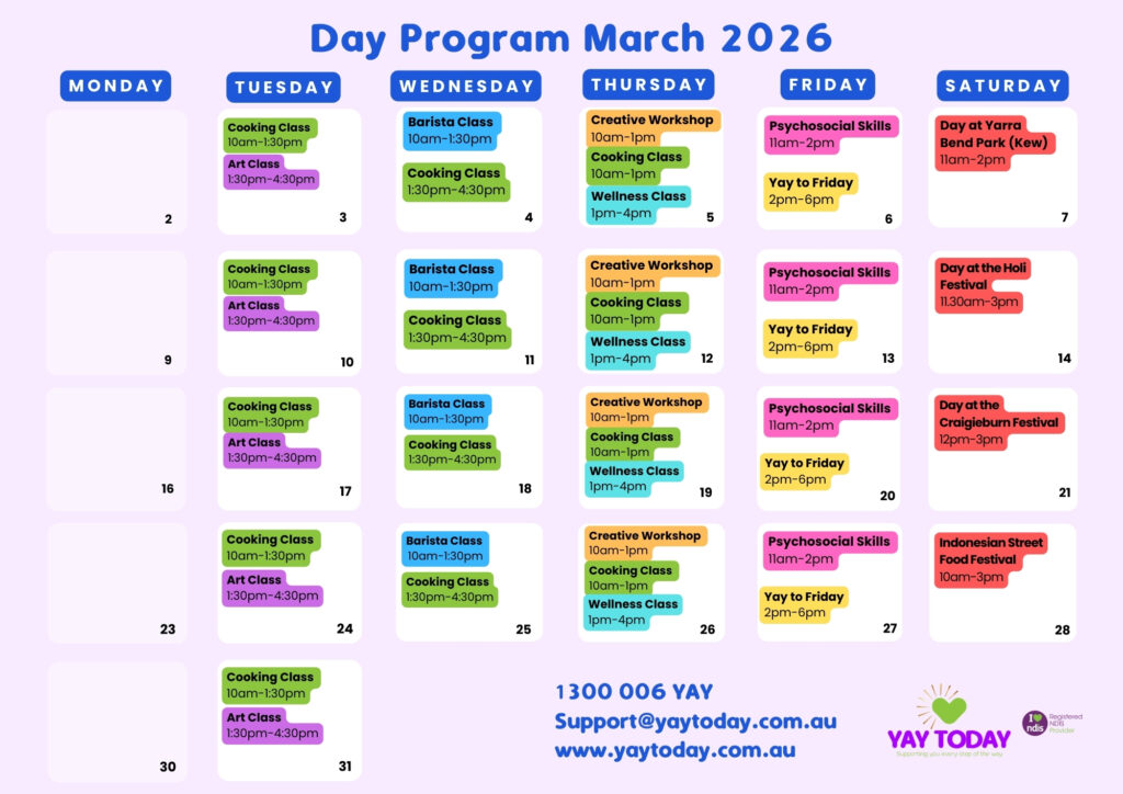 From painting and drawing to sculpture and mixed media, our NDIS art workshops offer a diverse range of activities suitable for every interest and skill level. Engaging in these workshops allows individuals with disabilities to cultivate their creativity, build confidence, and express themselves in meaningful ways. Join us at Yay Today and unlock your artistic potential!